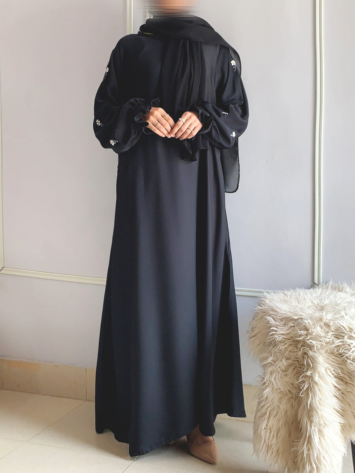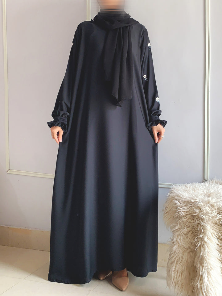 Elevate your everyday look with our Embroidered Daisy Abaya, a perfect blend of modest fashion and modern elegance.
