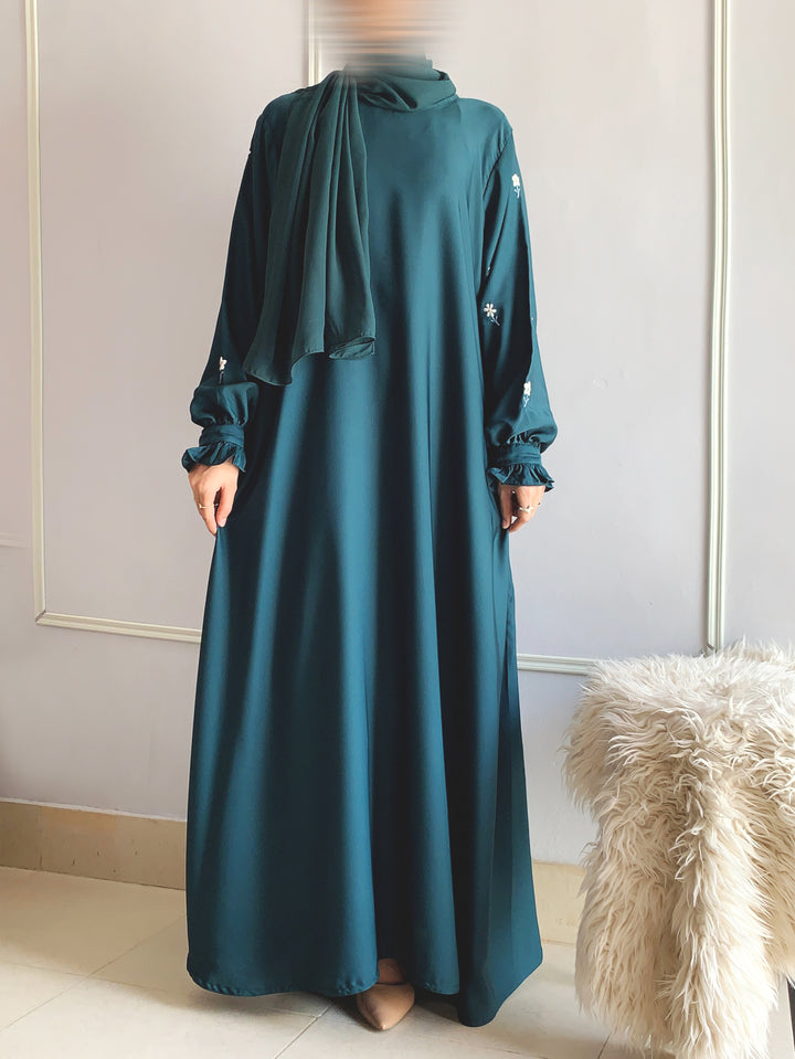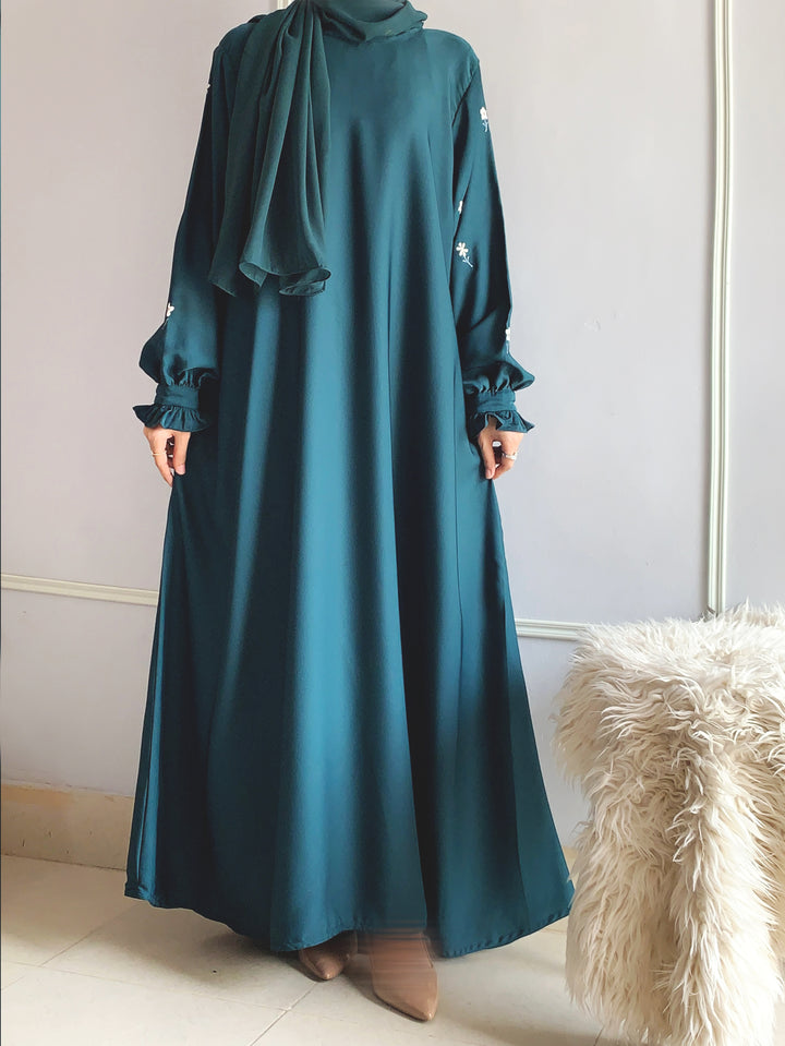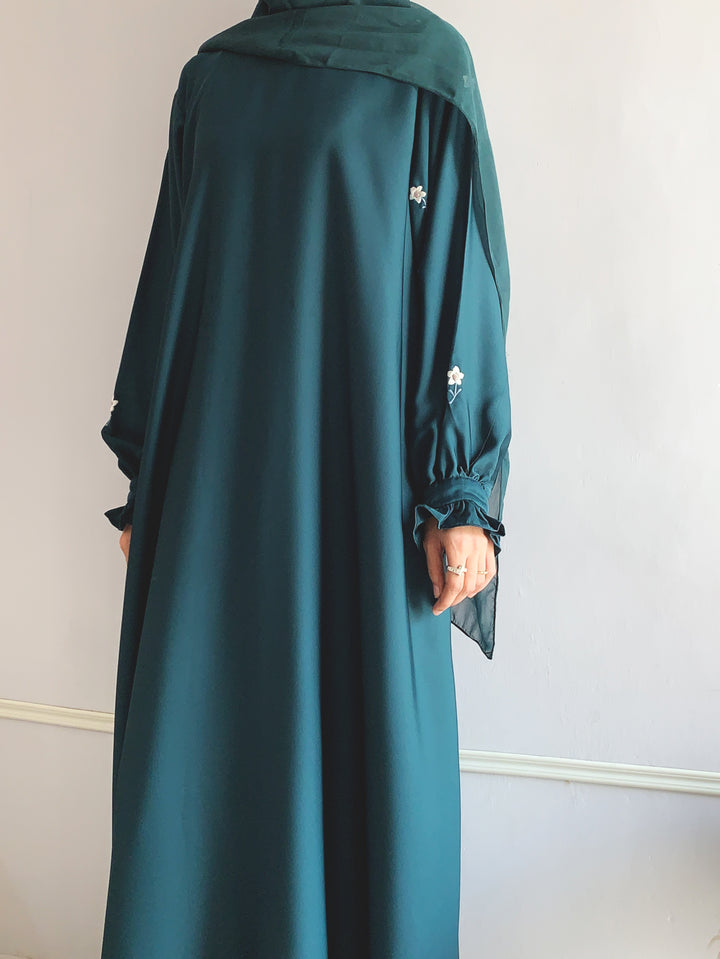 Elevate your everyday look with our Embroidered Daisy Abaya, a perfect blend of modest fashion and modern elegance.